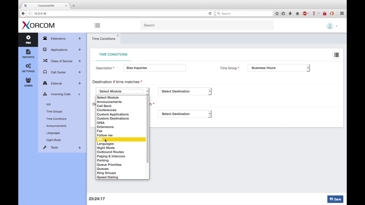 Certified VoIP course, training video – Time Conditions in CompletePBX 5 Virtual PBX.
